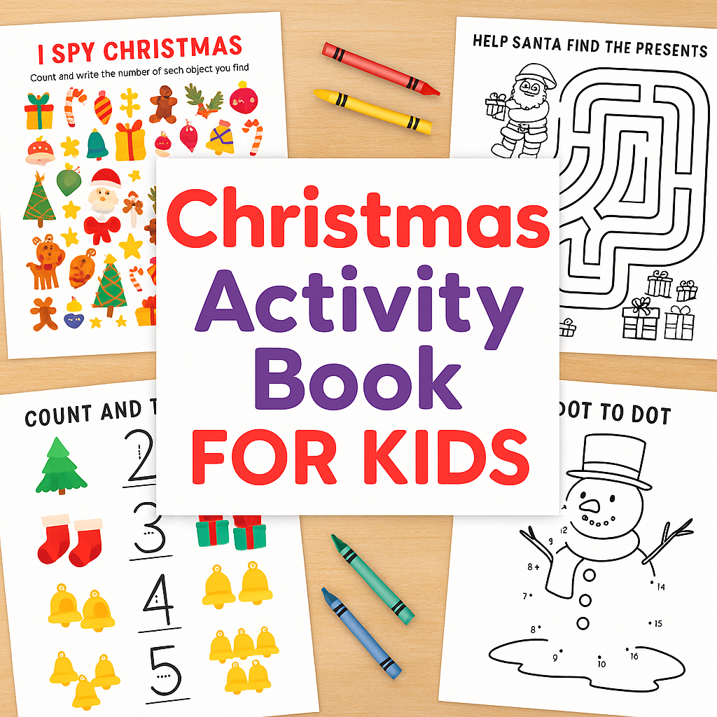Keep little ones entertained this holiday season with our Christmas Activity Book for Kids! πŸŽ…βœ¨ This printable pack includes fun and educational pages like dot-to-dot, I Spy, tracing, and coloringβ€”perfect for building focus, fine motor skills, and festive joy. Print at home and enjoy cozy, screen-free Christmas fun for preschool and early learners.