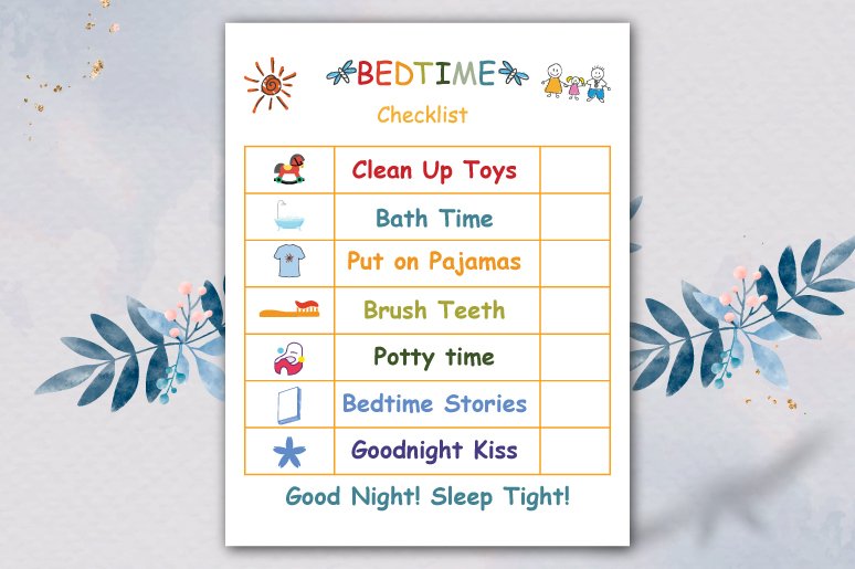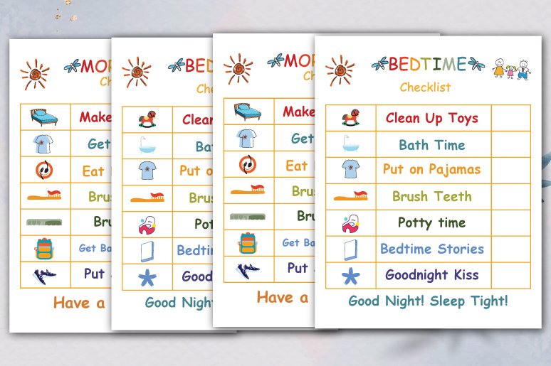 • Bedtime Routine Chart – covers calming evening tasks like bath time, pajamas, and storytime.